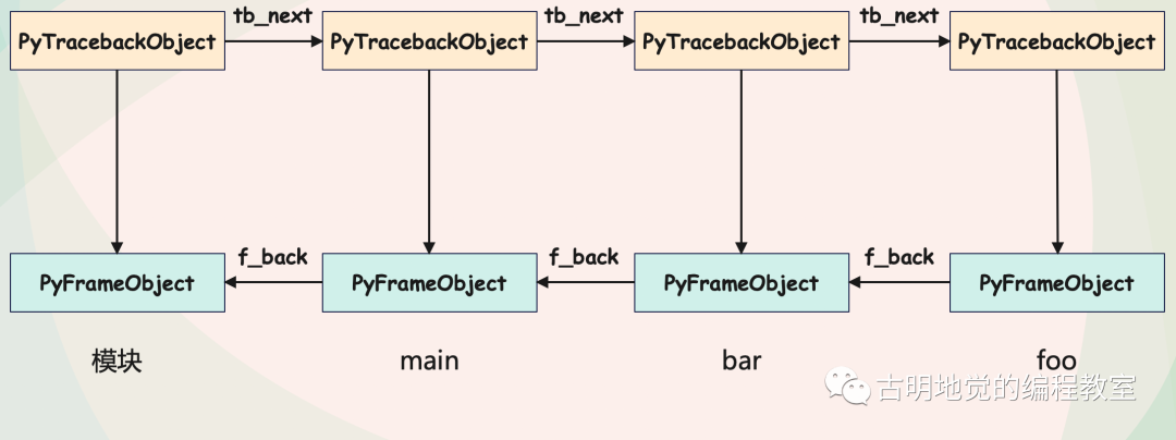 就这样栈帧一层层的回退,整个过程我们称之为栈帧展开。在栈帧展开的过程中,解释器不断地创建与各个栈帧对应的 traceback,并将其链接成链表。