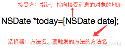 上面的程序中NSDate类中有一个date方法,因此,我们向NSDate类发送了date消息,让它执行date方法。