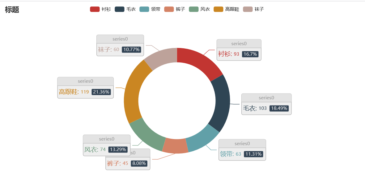 出现一个环,里面展示出数据标签和数据量以及数据百分比的情况,一般不会用到。
