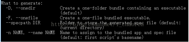 pyinstaller 命令的常用参数使用通过在命令行中输入: >pyinstaller –h即可,截取常用其中一段如下图所示: