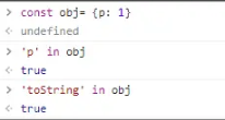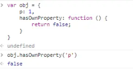obj.hasOwnProperty('p'); // 始终返回false执行结果如下: