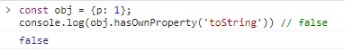 console.log(obj.hasOwnProperty('toString')); // false 执行结果如下: