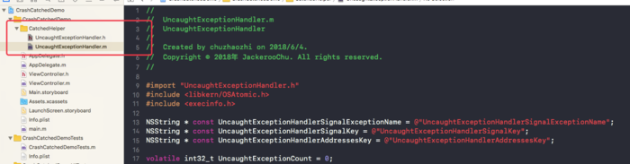 1.将截图的中CatchedHelper文件夹拖到你的项目工程中。