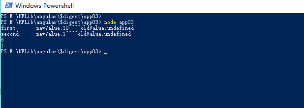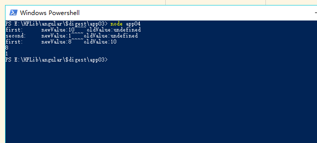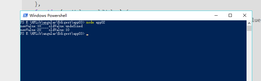 console.log('second: newValue:' newValue '~~~~' 'oldValue:' oldValue);