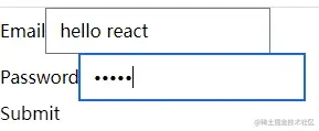 或许用React hook更简洁优雅些 , 引入useState管理email, password状态