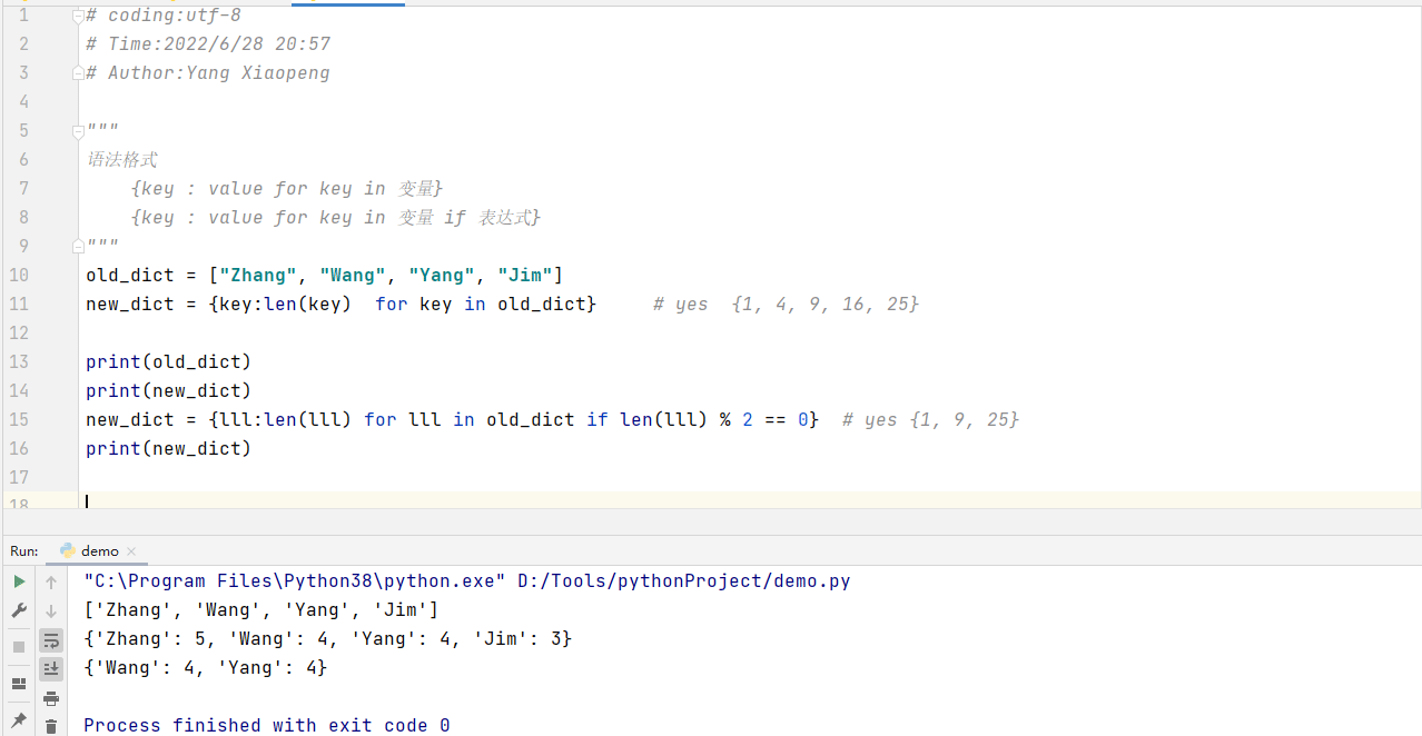 new_dict = {lll:len(lll) for lll in old_dict if len(lll) % 2 == 0} # yes {1, 9, 25}