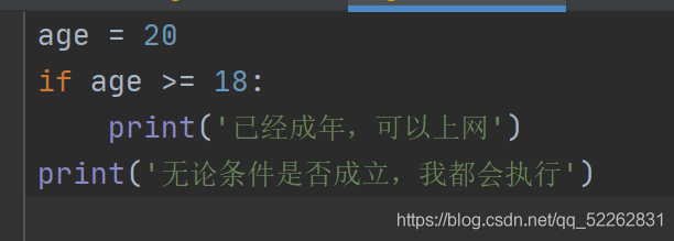缩进后的print才属于if语句,条件成立才会执行,而未缩进的print无论条件如何都会执行