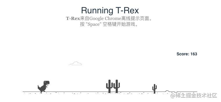 到此这篇关于Vue实现Chrome小恐龙游戏的示例代码的文章就介绍到这了,更多相关Vue Chrome小恐龙游戏内容请搜索Devmax以前的文章或继续浏览下面的相关文章希望大家以后多多支持Devmax!