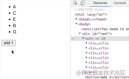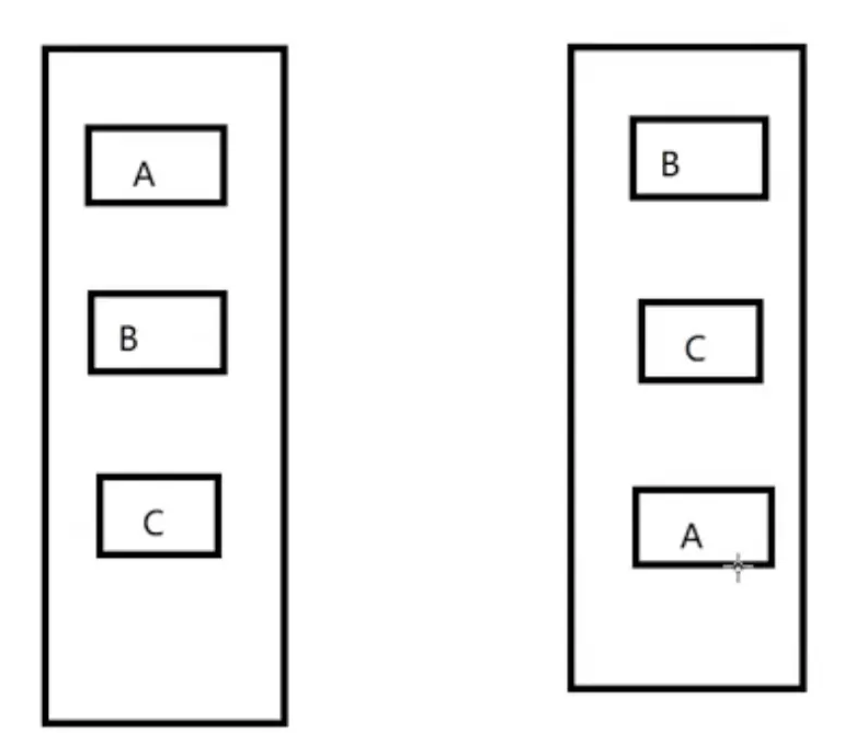 按照上面图的结构,我们需要知道那个元素变化了,其实右边相对左边只是把 A 做了移动,没有 dom 元素的删除和新增。
