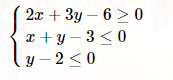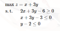 # Add constraints model = (2 * x 3 * y - 6 >= 0, "constrain_1") model = (x 3 * y - 3 == 0, "constrain_2")