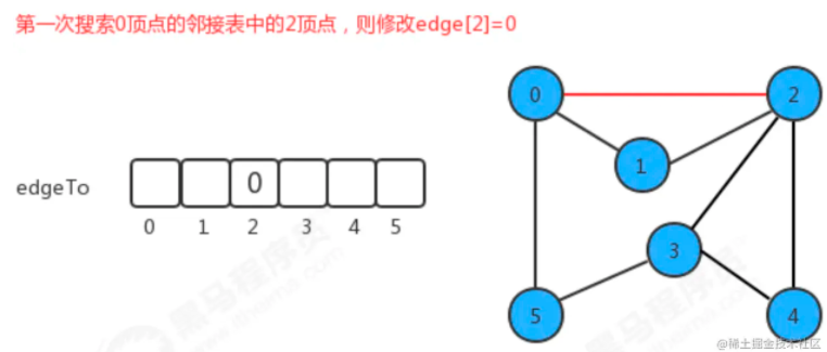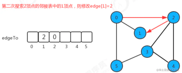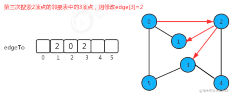 edgeTo[w] = v;//到达顶点w的路径上的最后一个顶点是v