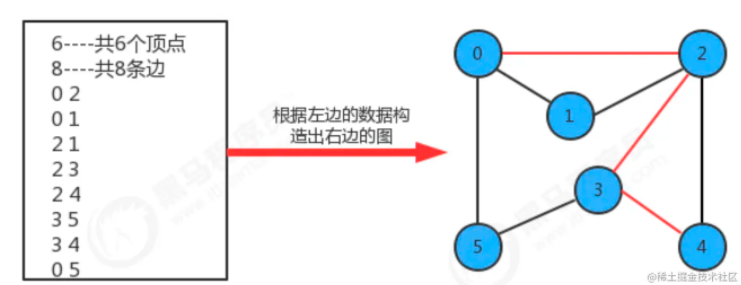 例如在上图上查找顶点0到顶点4的路径用红色标识出来,那么我们可以把该路径表示为 0-2-3-4。