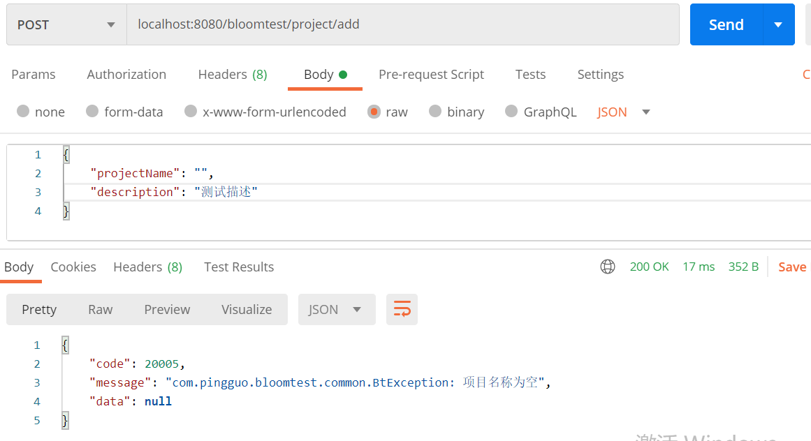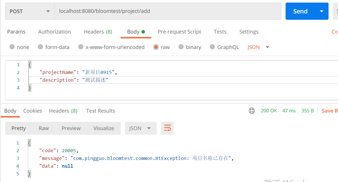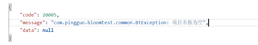 }注意,在这里加入了新的代码,比如BtException.throwException("项目名称为空");,当项目名称为空的时候抛出我自定义的异常。