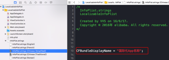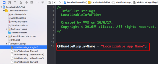 至此,本地化App名称已经演示完毕,其步骤就是:
