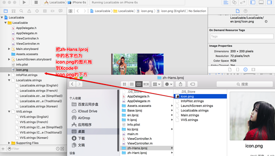 然后把zh-Hans.Iproj中的icon.png拖到Xcode中,如下图: