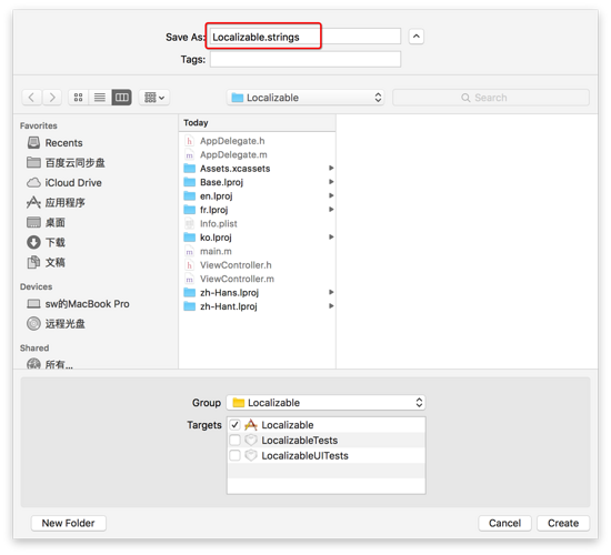 其实字符本地化和App名称本地化过程如出一辙,只是创建的文件名成不一样(连同后缀一起,文件名必须是Localizable.strings),其他步骤完全相同。为了能够让大家彻底了解,此处还是会把步骤一一贴出来。