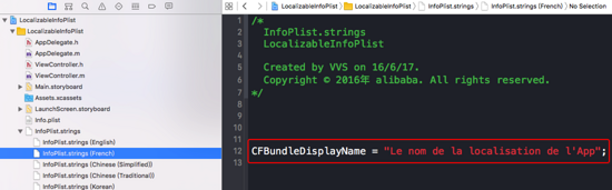 CFBundleDisplayName = "Le nom de la localisation de l'App";