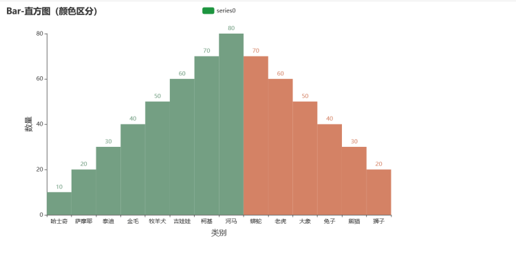 直方图更加的直观的展示,这个案例更是可以运用到统计里面,颜色的区分让我们更加的快速理解。