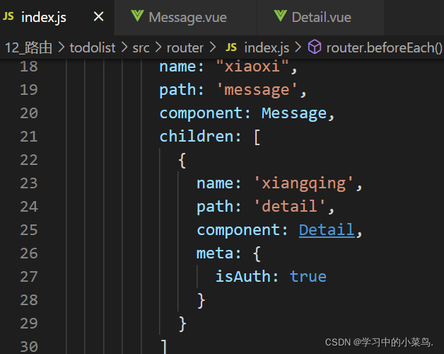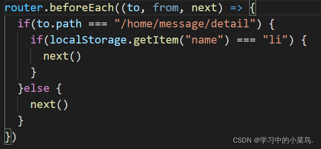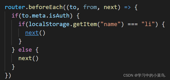 作用 : 初始化的时候 和 在每一次路由切换之前调用beforeEach里面的函数