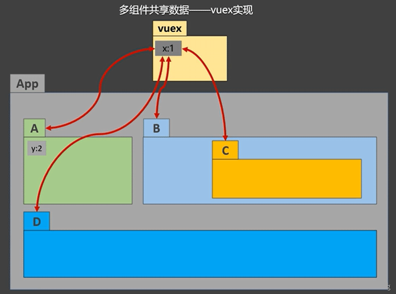 在 Vue 中实现集中式状态(数据)管理的一个 Vue 插件,对 vue 应用中多个组件的共享状态进行集中式的管理(读写),也是一种组件间通信的方式,且适用于任意组件间通信
