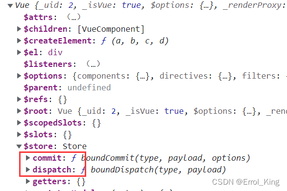 })运行项目,我们可以打印 vm 和 vc,可以看到 $store
