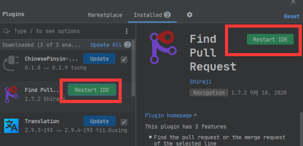 卸载更简单,直接点击模块后面的 Restart IDE 即可完成安装。