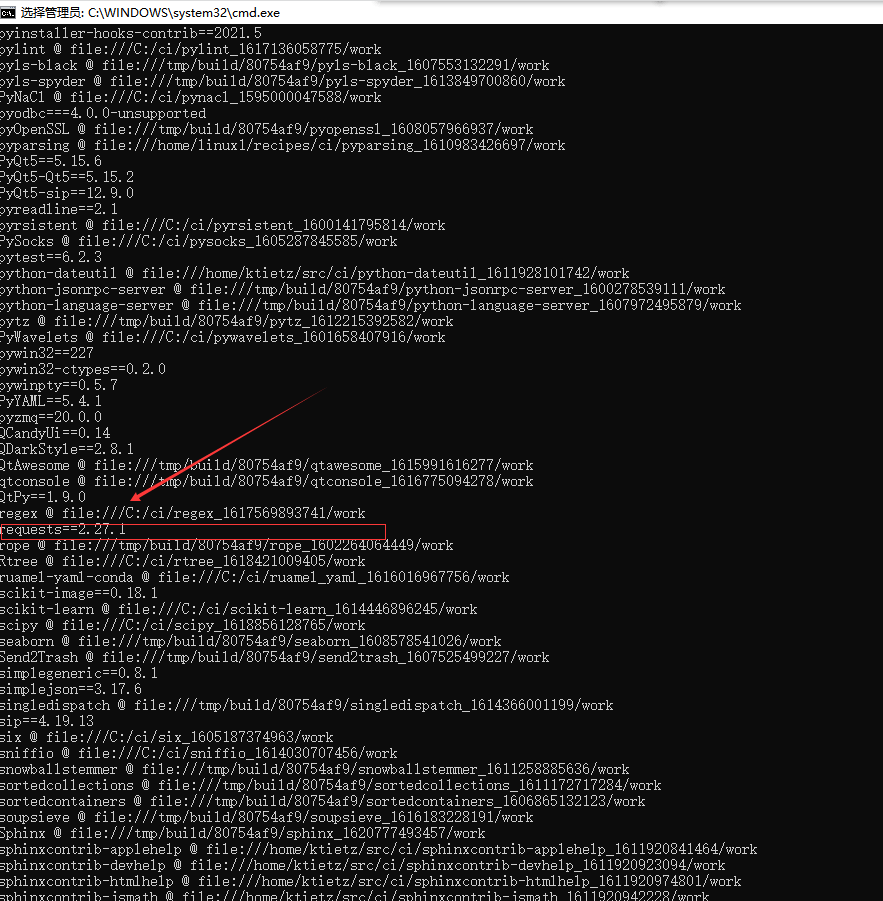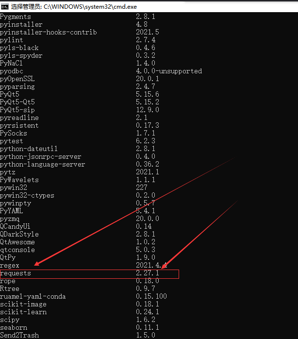 我们来查看安装一下,输入pip list 按回车即可查看,pip list 是查看Python中安装了哪些第三方库。