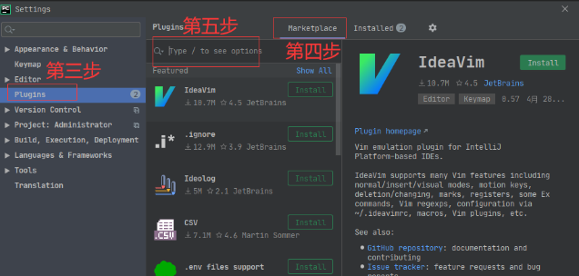 点击 plugins (插件)点击marketplace (插件中心),点击搜索框,输入你要安装的模块