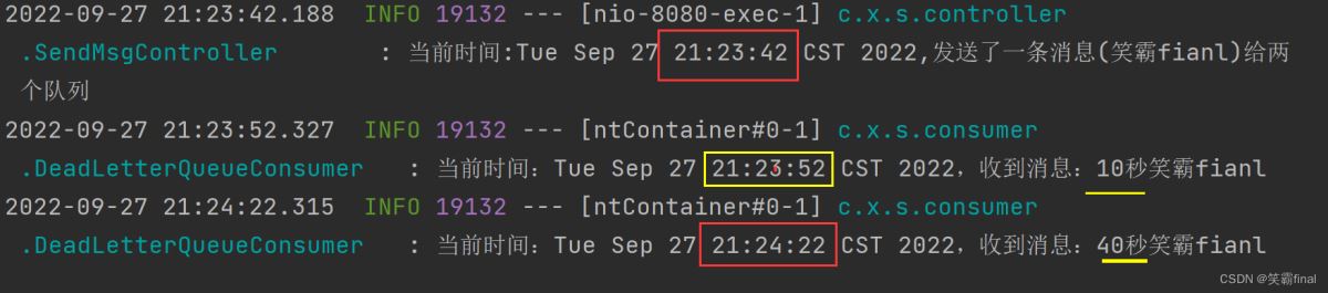 rabbitTemplate.convertAndSend("X","XA","10秒" message);