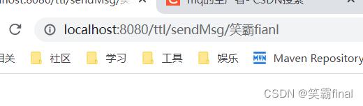 先在历览器输入http://localhost:8080/ttl/sendMsg/笑霸fianl