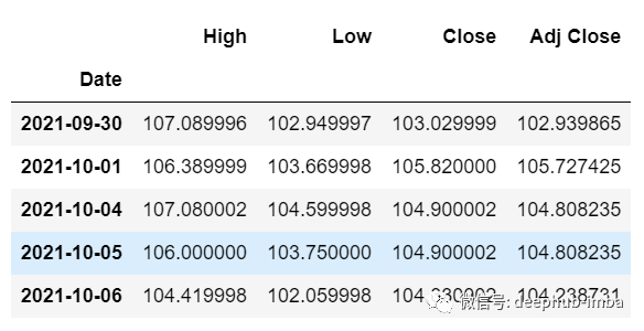 这里我们需要“High”、“Low”、“Close”、“Adj Close”列的即将到来的 30 个值来对“Open”列进行预测。
