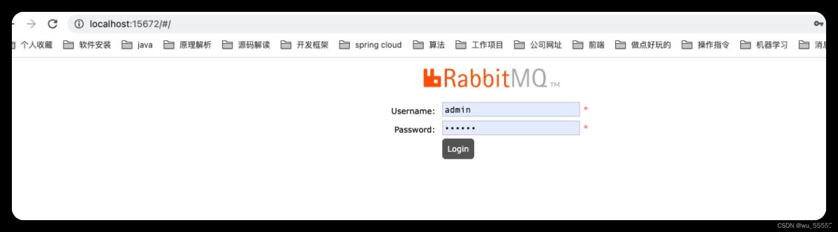 3、无需开启远程管理,直接登陆ip:15672即可访问管理页面