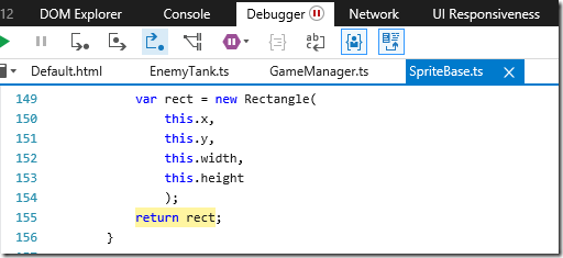 优点: Lambda 非常好地解决了 this 指针的问题。 Chrome、IE 都能直接调试 TypeScript! 过程中还发现了弱类型无法发现的错误。因为重命名,还没有修改原来的代码。(SpriteManager.js 98 行)