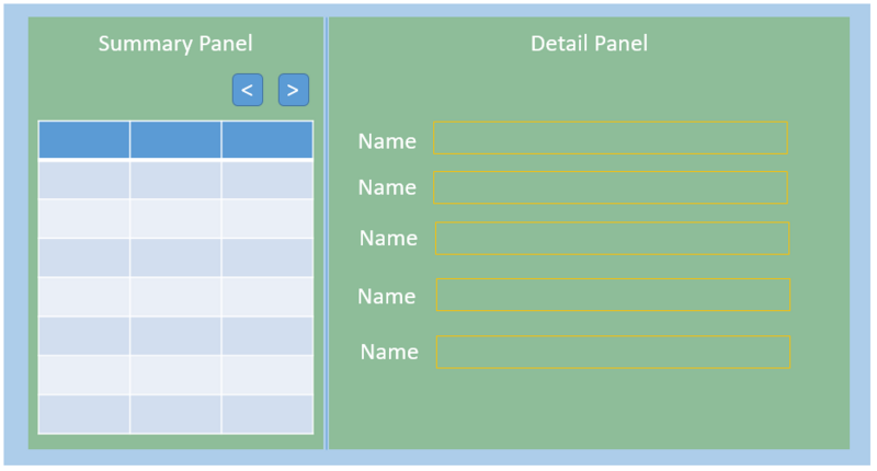 我们还看到有“<”和“>”两组按钮,这就是我们要做的“双向折叠组件”。点击左边的“<”,Summary Panel折叠起来,Detail Panel铺满整个页面,我们把它记作“Left State”,如下图: