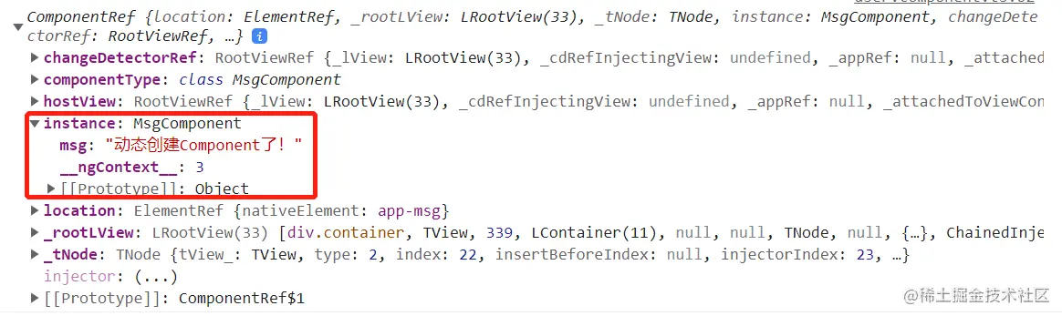 msgComp.instance.msg = '动态创建Component了!';