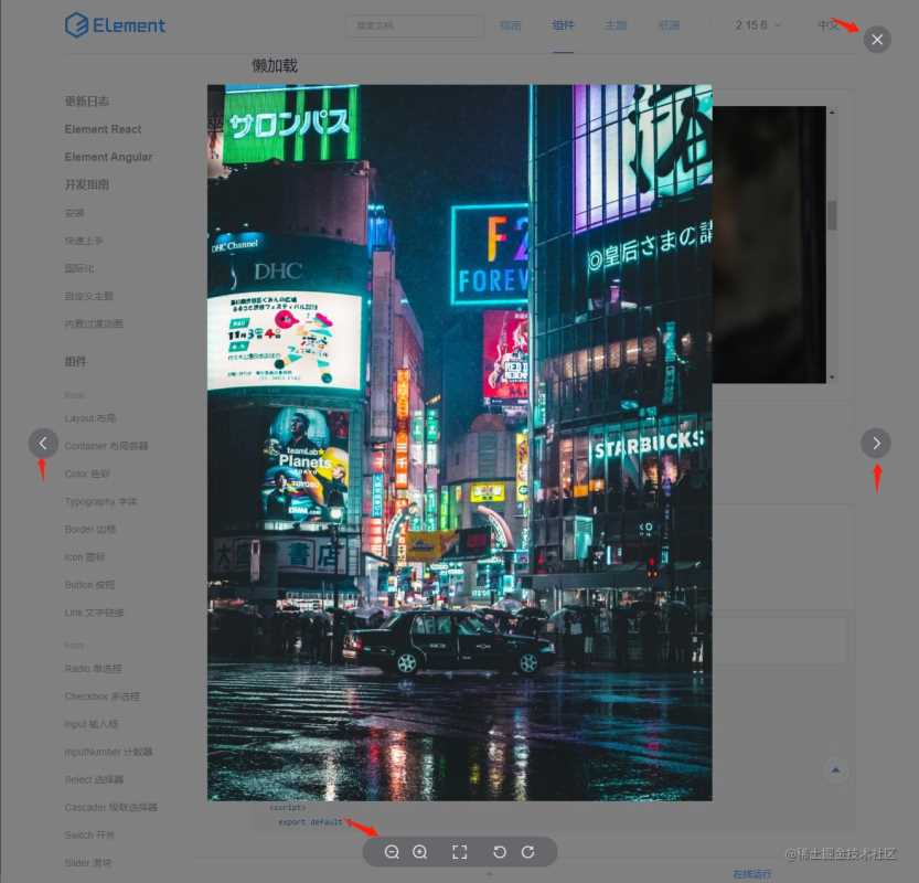 //currentImage与viewerZIndex是一个computed属性,这样就不需要可以修改这两个属性,一旦发生改变就可以触发 computed: { currentImg() { return this.urlList[this.index]; }, viewerZIndex() { const nextZIndex = PopupManager.nextZIndex(); return this.zIndex > nextZIndex ? this.zIndex : nextZIndex; } } //具体的实现 methods: { prev() { if (this.isFirst && !this.infinite) return; const len = this.urlList.length; this.index = (this.index - 1 len) % len; }, next() { if (this.isLast && !this.infinite) return; const len = this.urlList.length; this.index = (this.index 1) % len; } } -