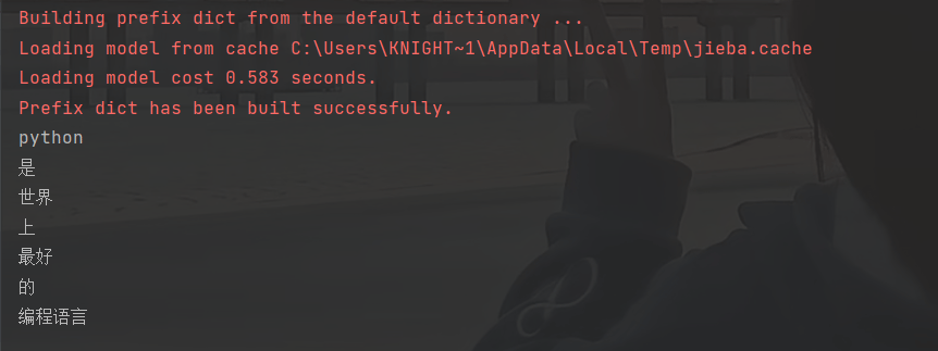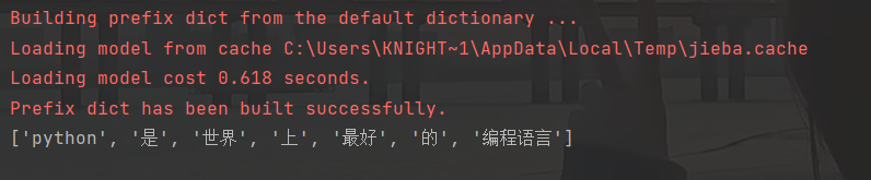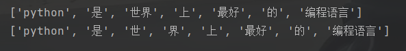 # # ['python', '是', '世界', '上', '最好', '的', '编程语言']