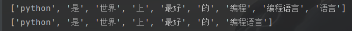 # # ['python', '是', '世界', '上', '最好', '的', '编程', '语言', '编程语言']