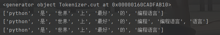# # <generator object Tokenizer.cut at 0x0000019F5E44DA98>