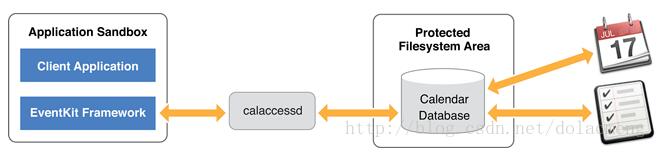 我们可以使用系统提供的EventKit框架来访问和操作用户的日历日程和提醒(虽然日历和提醒是两个独立的app,但是是用同一个框架来处理数据)。同样地,日历和提醒的数据的数据,都是存储在同一个叫做Calendar Database的数据库中: