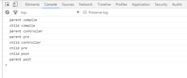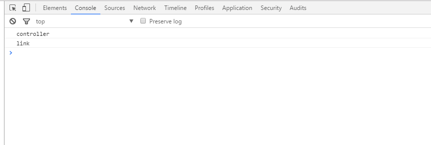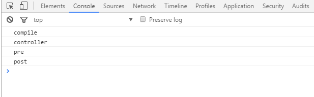 我们可以看到什么order指令中写了controller, complie, link函数;我们可以思考一下上面会输出一下什么来.