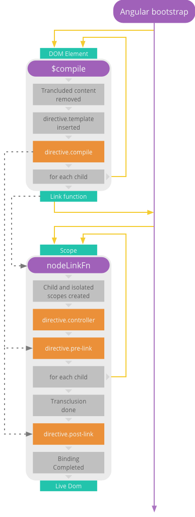 算了算用angualrjs去做开发也有两个月了,但做为一个菜鸟,难免会被大神吊打(这里有一个悲伤的故事...)。某天一位前端大神问我:你知道angular指令中的controller,compile,link函数有什么不同?然后我就一脸懵逼了....于是决定深入的去探究下。