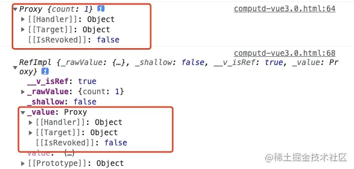 基本类型返回值value就是具体的值,对象类型返回值value是 reactive 方法创建的 proxy 对象。