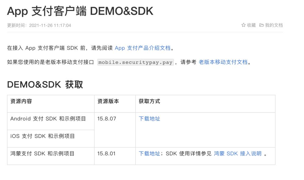 首先,我们去支付宝官网下载支付宝SDK,下载对应的Android版本。