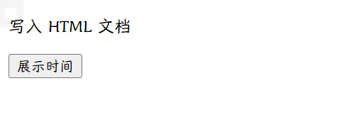 </html>新建 HTML 文件并写入上述内容后,浏览器打开,页面会显示如下内容,可以看到用 document.write() 写入当前时间是成功的。但是需要注意的是,如果 document.write() 是和其他内容同时在内容加载完之前加载,则可以和其他内容一起显示。但如果等页面内容已经完成加载后执行 document.write(),那么之前页面加载完的内容都将被写入的内容所覆盖。
