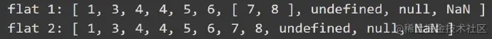 const array = [1, 3, 4, [4, 5], [6, [7, 8]], [, ,], [undefined, null, NaN]];