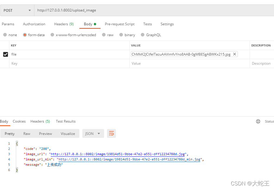 return {"code": '200', "image_url": image_url file_name, "image_url_min": image_url file_name_min,