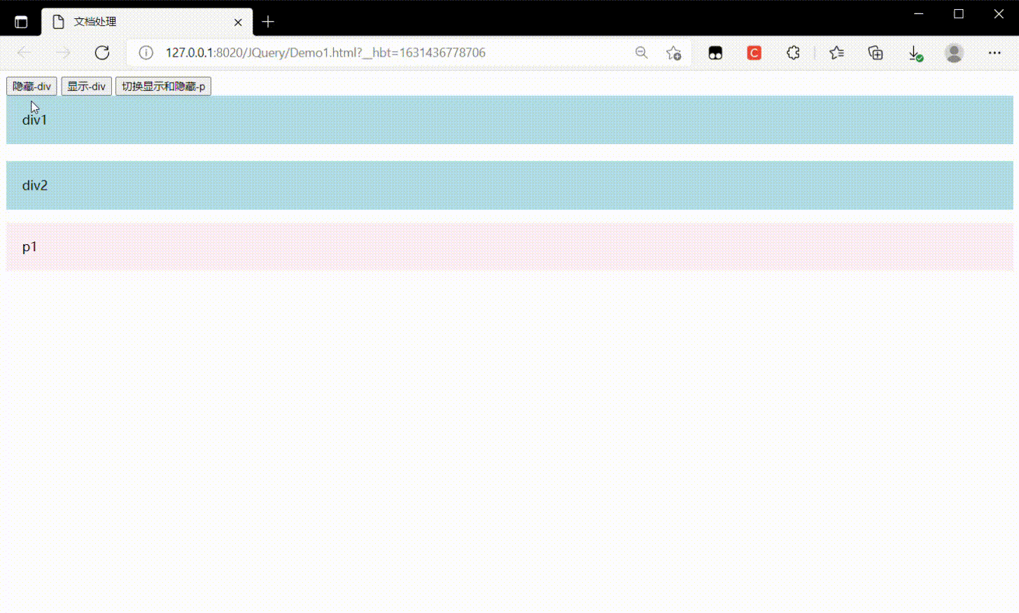 本文为大家分享了JQuery实现隐藏和显示动画效果的具体代码,供大家参考,具体内容如下