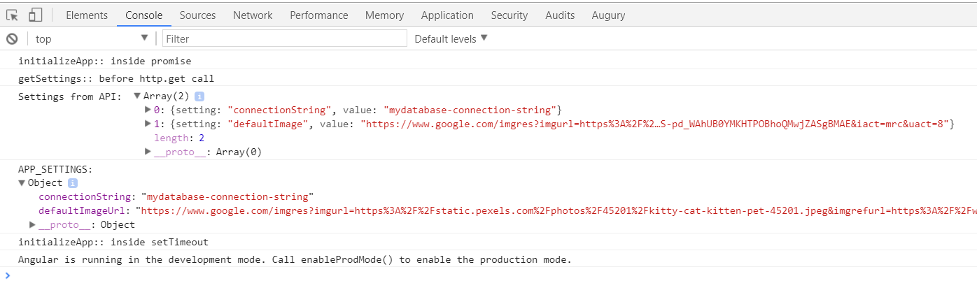 APP_SETTINGS.connectionString = settings[0].value;