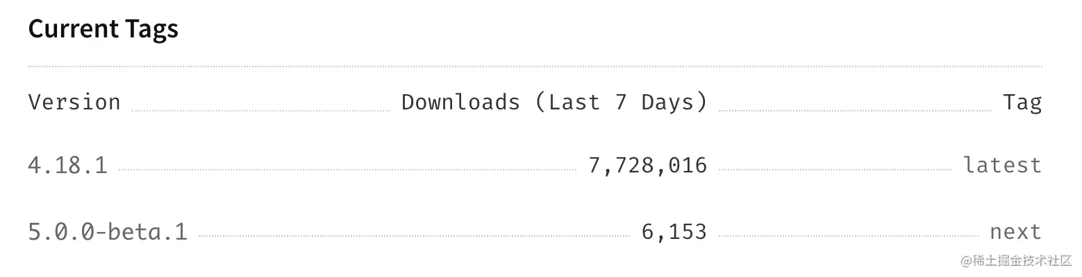 例如"express": "latest",可以安装4.18.1 (2022.06.13最新版本)。